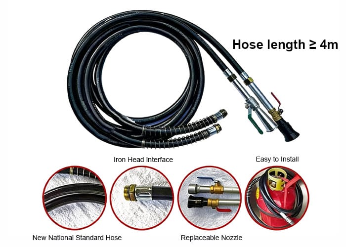 Trolley fire extinguisher hose complies with the new national standard, featuring iron connectors, wide applicability, easy installation, excellent sealing performance and reliable structure.